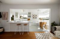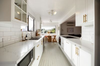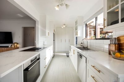 The heart of the home is a bright, open-plan living area that welcomes you with natural light and a sense of space. The beautifully appointed galley-style kitchen is a true standout – sleek and practical with a breakfast bar that makes everyday meals and entertaining a breeze.