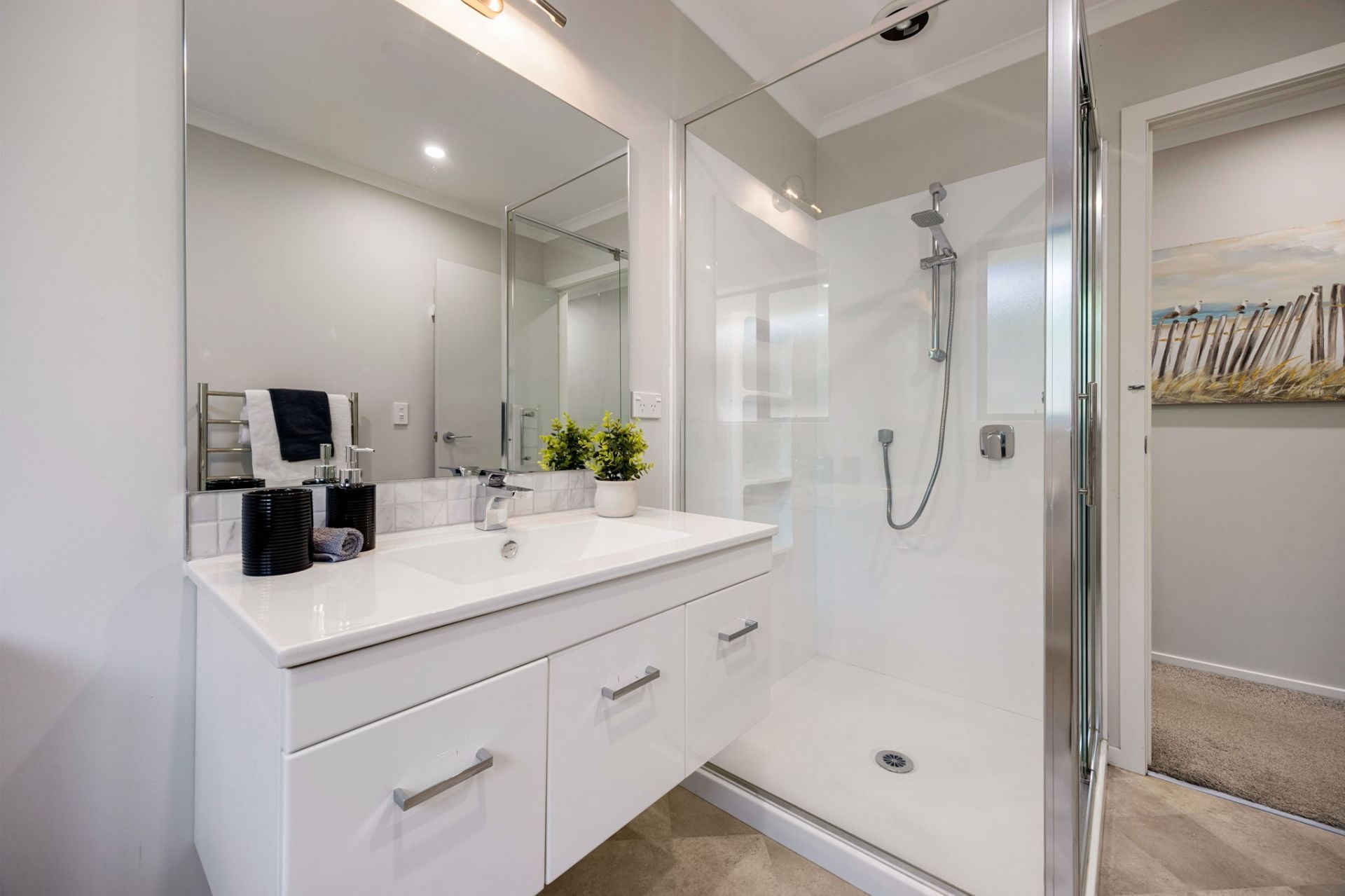 At the centre of the home is a light-filled open-plan living area, ideal for everyday living and entertaining alike. This space flows effortlessly to a sheltered patio, creating a private outdoor retreat - perfect for relaxing or hosting friends year-round.