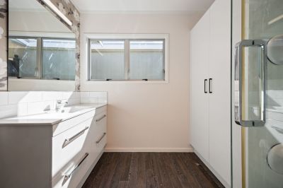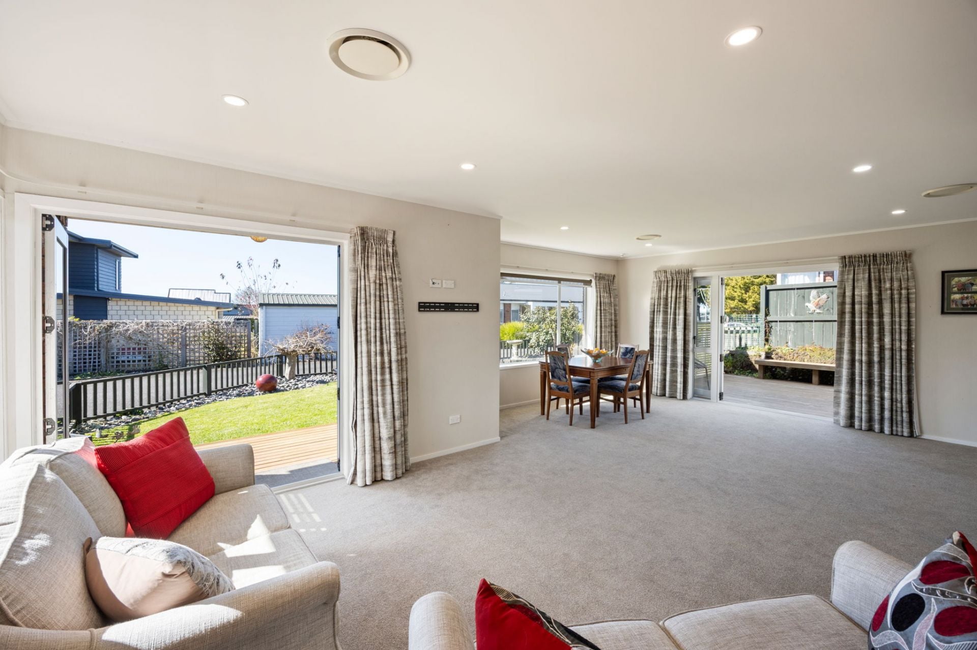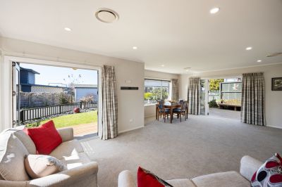 The generous open-plan living area flows seamlessly into the modern kitchen and dining space, which opens out to a sunny deck and patio - perfect for relaxing or entertaining.